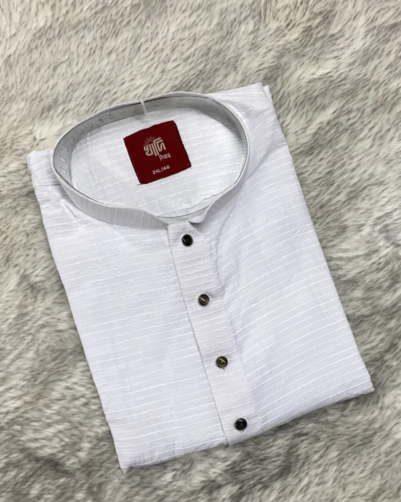 খাদি স্ট্রাইপ পাঞ্জাবি (সাদা)